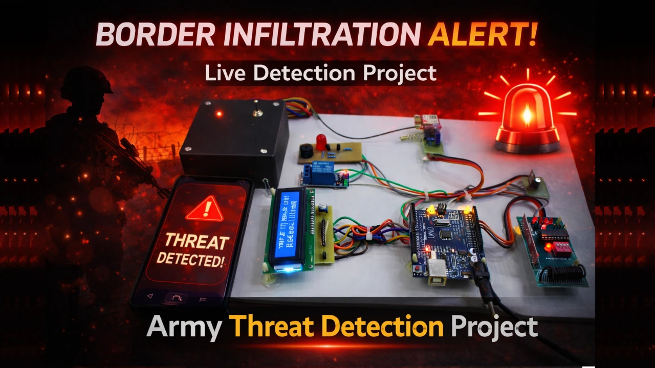 The Border Intrusion Detection System Project is a practical and demonstration-ready Innovative Army Project designed to showcase how border security can be monitored using wireless communication and GSM alerts. This system detects intrusion at predefined locations and instantly activates local alerts while also sending remote notifications. 🚨📡